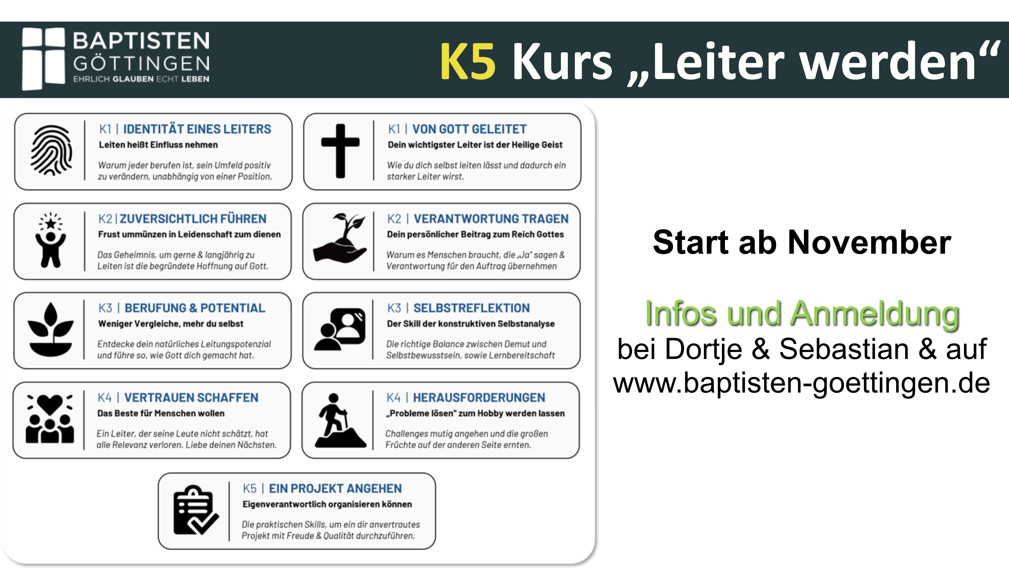 Im November möchten wir mit einem Kurs "Leiter werden" starten.